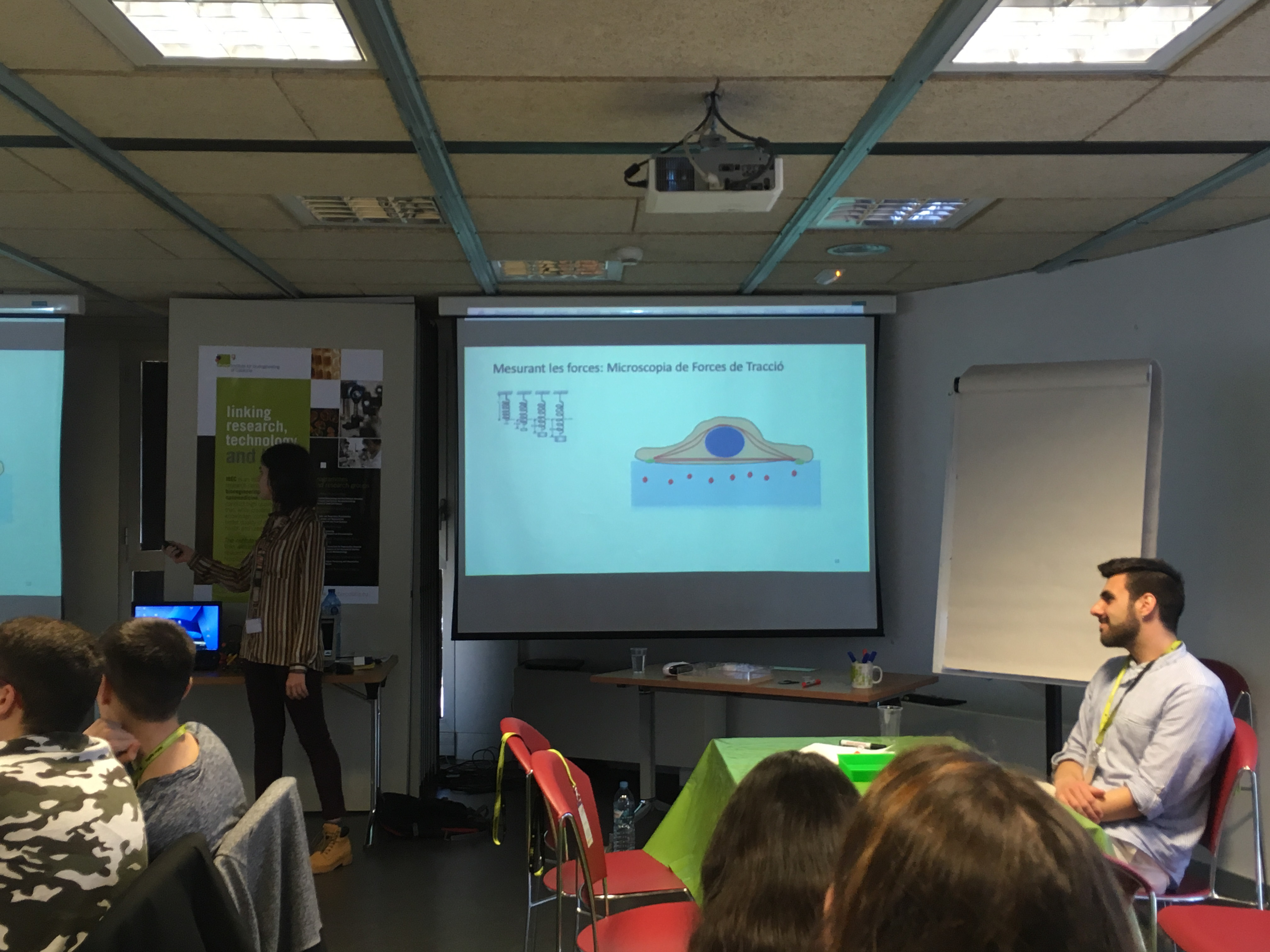 During this month, at IBEC we had several workshops on mechanobiology. With Escola Roig Tessàlia, on 7th March, our students Ariadna and Macià (from Xavier Trepat’s group) have explored how cells exert forces and the students have measured them and created a cell membrane model. Later, on the 14th, escola Nazaret also visited us and this time the workshop was imparted by Xarxa (from Pere Roca-Cusachs’ group) and Ariadna.